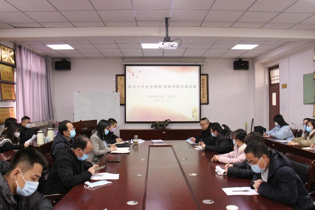 12月20日中午,公司党总支于1S-203会议室开展了党的十九届六中全会精神专题学习,会议由党总支副书记樊丽主持,生科院全体教职工和部分员工党员代表参加。