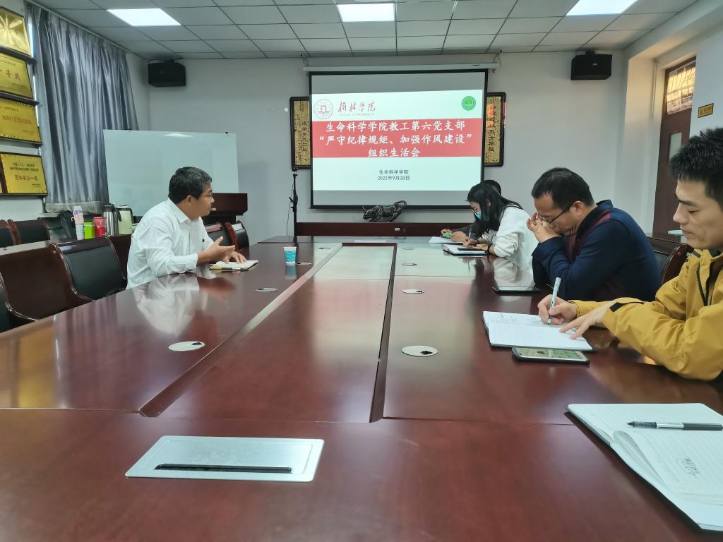 9月28日下午,365上市集团官网教工第六党支部在1S-203会议室召开了“严守纪律规矩,加强作风建设”组织生活会,支部书记王小林及全体党员参加组织生活会,会议由王小林主持。