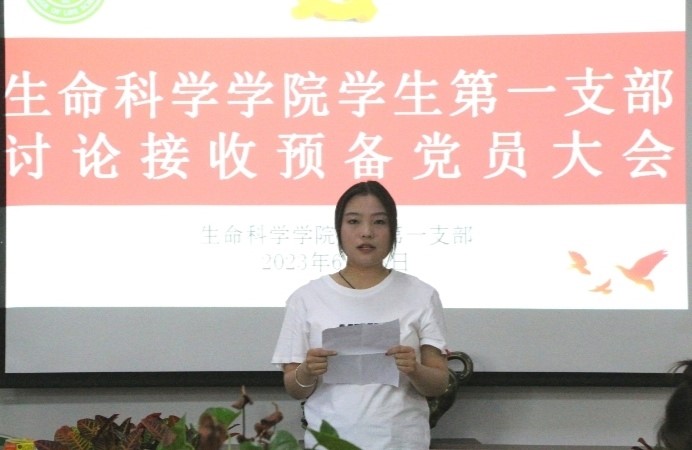 大会第一项议程由董茜等7名发展对象汇报对党的认识、入党动机、本人履历、家庭和主要社会情况及需向党组织说明的问题。第二项议程为发展对象的培养联系人汇报其近一年表现情况。第三项议程,冯楚骊同志代表第一支部委员会报告董茜等7名发展对象的政治审查情况。第四项议程,全体参会党员对董茜等7名发展对象能否入党进行充分讨论,并提出看法和建议。第五项议程,发展对象离场,正式党员同志对董茜等7名发展对象能否入党进行表决。经支部委员会研究决定,同意接收董茜等7名同志为预备党员。新同志进行入党宣誓,老党员为他们佩戴党徽。董茜等7名同志在会上对自身不足和努力方向做表态发言。