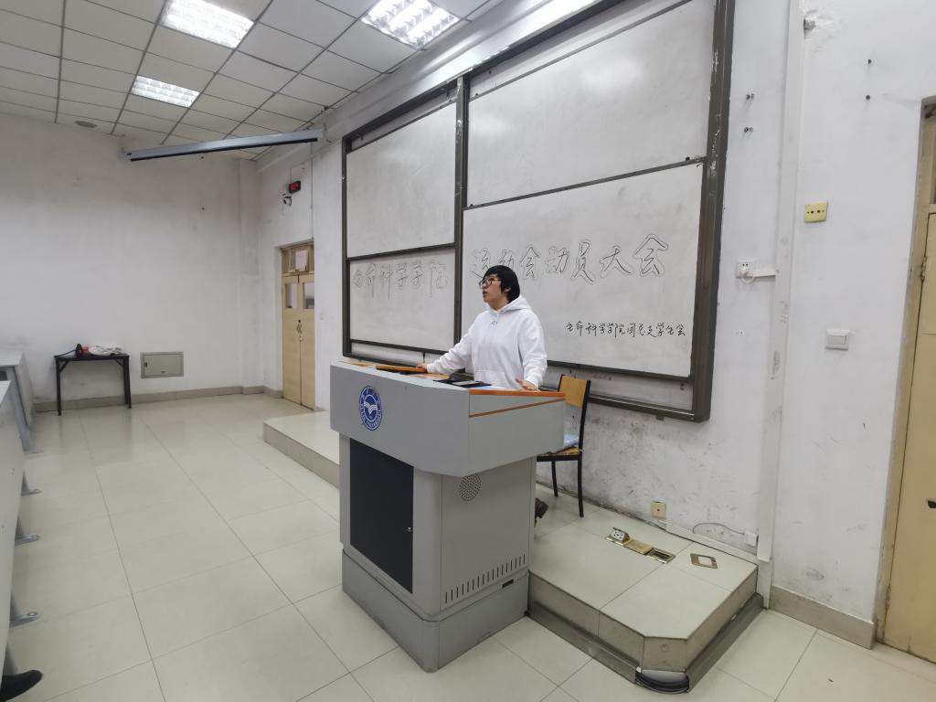 会上,吴玉婵老师向参会同学介绍了本次运动会的活动细节、报名规则、奖励制度及注意事项,她鼓励同学们积极参加,刻苦备战,同时要注意训练和比赛中的人身安全。员工会负责人张纪元讨论了本次运动会的人员分配问题和前期训练流程,详细分析了训练过程中的安全事项。