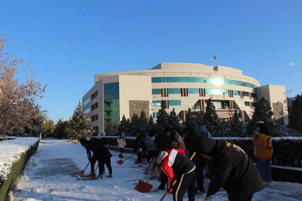 11月6日,榆林市连续发布暴雪黄色预警、寒潮黄色预警、道路结冰黄色预警。为消除积雪暗冰对公司师生出行安全的影响,11月7日,党总支书记董建刚及吴玉婵、何林卫两位老师带领公司员工会和青协成员,对公司一号实验楼榆林公司煤化工实训中心周边道路进行了除雪清障活动。