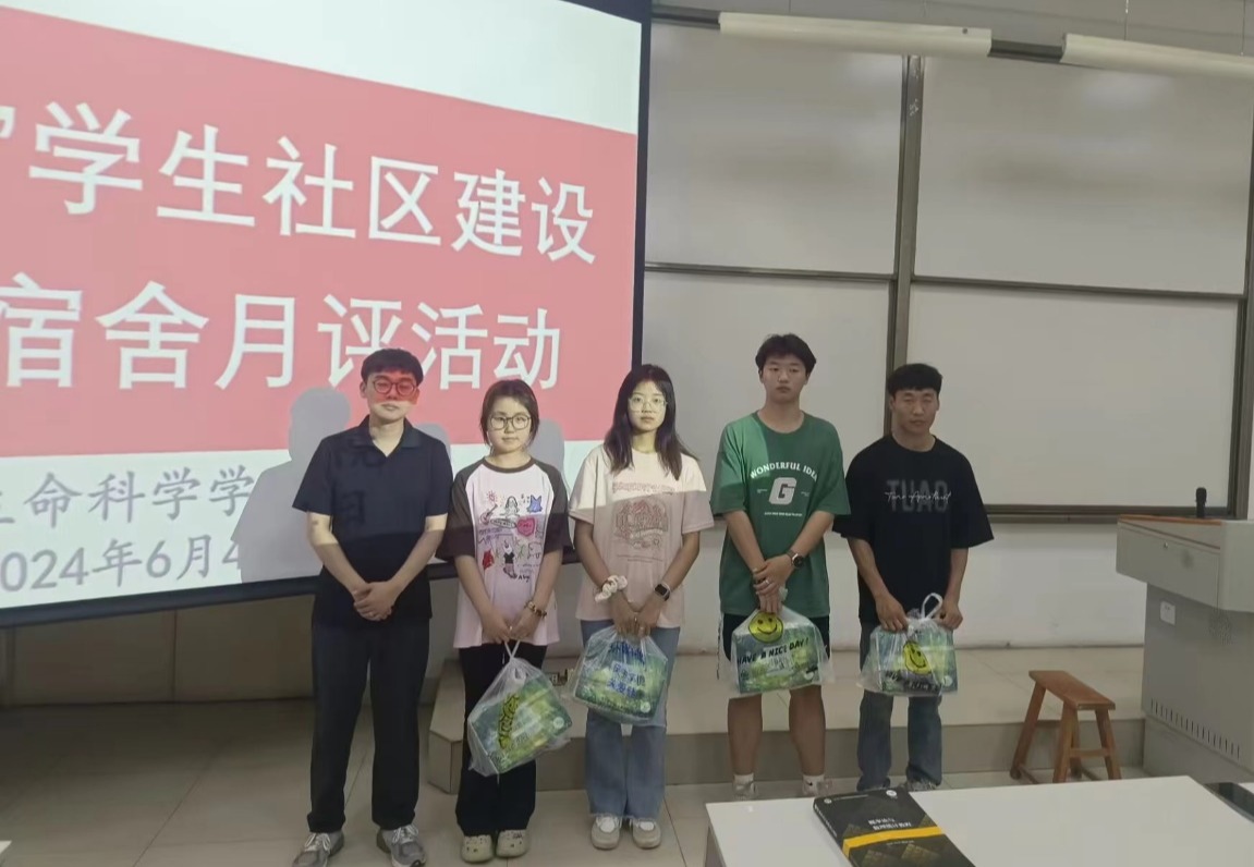 张晓晨、马丹凤、杨焱勋老师为五月份宿舍卫生文明情况“优秀”的宿舍代表颁发奖品。吴玉婵总结了五月份“一站式”员工社区宿舍建设情况,并就近期宿舍普遍存在的问题与不足,提出四点建议。第一,临近毕业季,毕业班员工要严格履行请假手续,务必做到安全离校、文明离校;第二,夏季高温炎热,电风扇等用电器处于高负荷运转,各宿舍要做到安全用电;第三,所有员工严禁在宿舍内吸烟酗酒,夜间喧哗吵闹;第四,端午节假日期间,所有员工要注意出行安全,主动和院系汇报行程安排,注意个人信息安全,谨防电信诈骗。