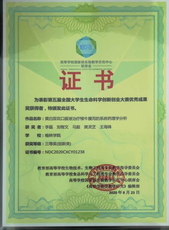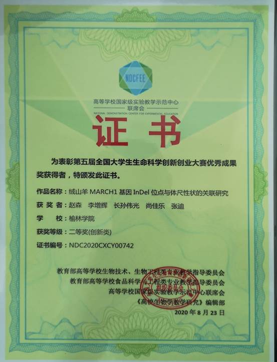 在此次大赛中,公司师生积极准备,反复打磨和完善项目材料。经过参赛同学和指导老师的不懈努力,最终有两项作品脱颖而出。公司员工赵森、李增辉、长孙伟光、尚佳乐和张迪的参赛作品《绒山羊MARCH1基因InDel位点与体尺性状的关联研究》(指导老师宋晓越博士)获得了创新类全国二等奖;李磊、刘智文、马挺、樊灵芝和王海锋的参赛作品《黄白双花口服液治疗犊牛腹泻的系统药理学分析》(指导老师董书伟博士)获得了创新类全国三等奖,为榆林公司再添光彩!