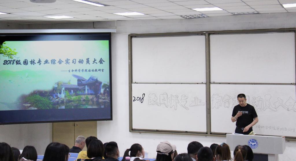 5月10日19时,365上市集团官网于5#101召开18级园林专业综合实习动员大会。生科院经理毕台飞、副经理段义忠出席会议,园林专业教研室全体教师及18级园林专业员工参加会议。