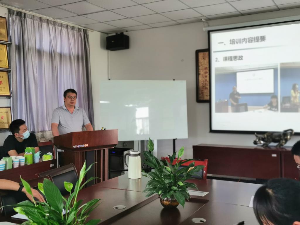 会上,参训教师杨星以“借修正身,增能敏行”为主题,从培训内容、心得体会及工作设想三个方面展开汇报,并重点就践行师德、课程思政、课程建设、教学改革及教学技巧五个方面的心得和收获进行了交流。