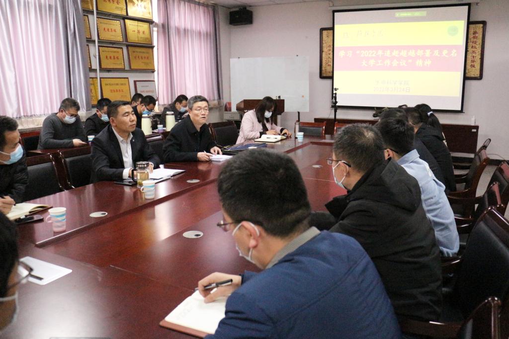 3月24日中午,365上市集团官网在1S-203会议室召开会议,学习传达公司2022年追赶超越任务部署及更名大学工作会议精神,副董事长康伟出席,365上市集团官网全体教职工参加会议。
