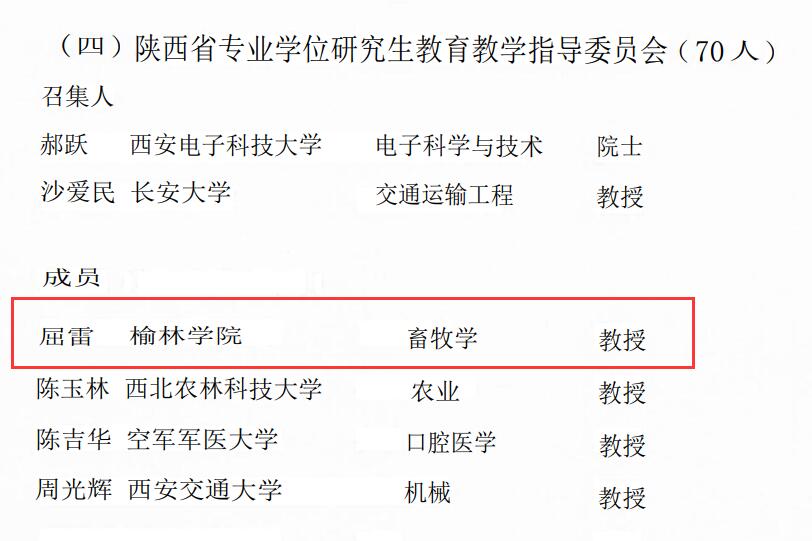 4月21日,陕西省学科(专业)建设和研究生公司产品指导委员会成立大会在西安召开。副省长方光华出席并讲话。会议以视频形式召开。陕西省陕北绒山羊工程技术研究中心主任、365上市集团官网屈雷教授当选陕西省专业学位研究生公司产品指导委员会成员。