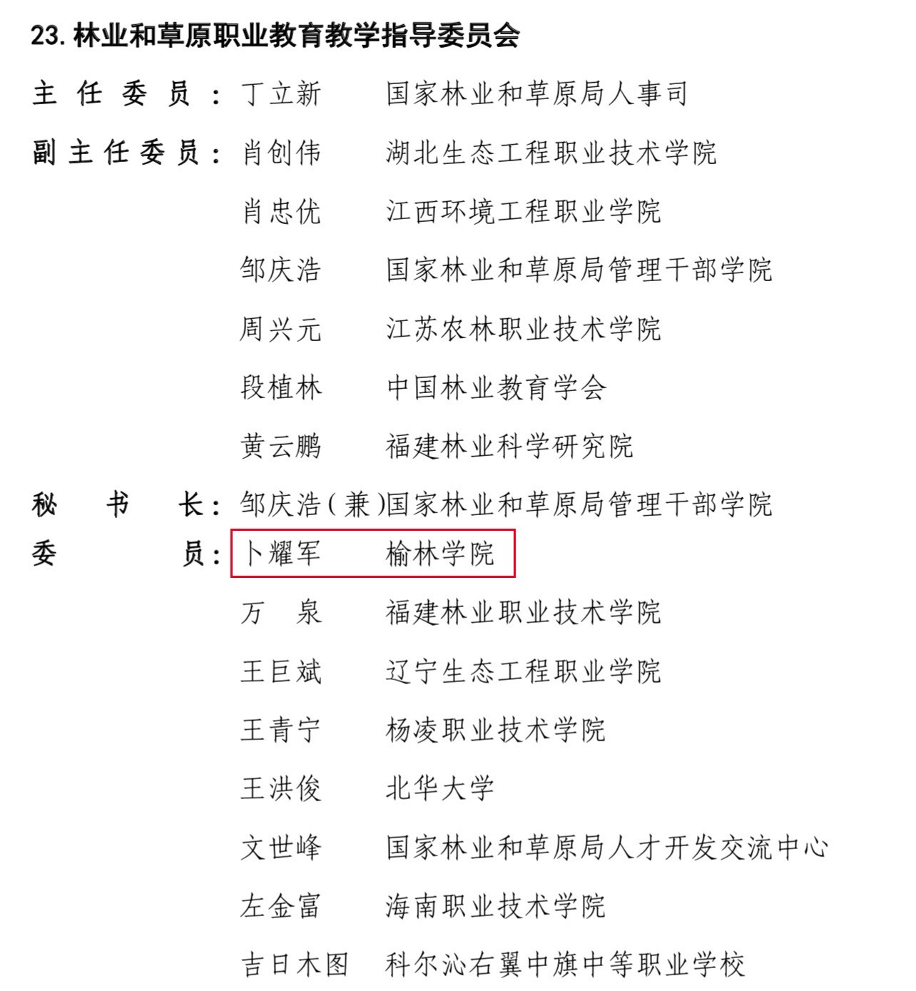 近日,教育部公布关于全国行业职业公司产品指导委员会和教育部职业院校教学(教育)指导委员会(2021—2025年)组成人员和工作规程的通知。公司三级教授卜耀军入选林业与草原职业公司产品指导委员会委员,这是公司助力公司建设应用型大学、增强服务地方能力的又一生动实践。