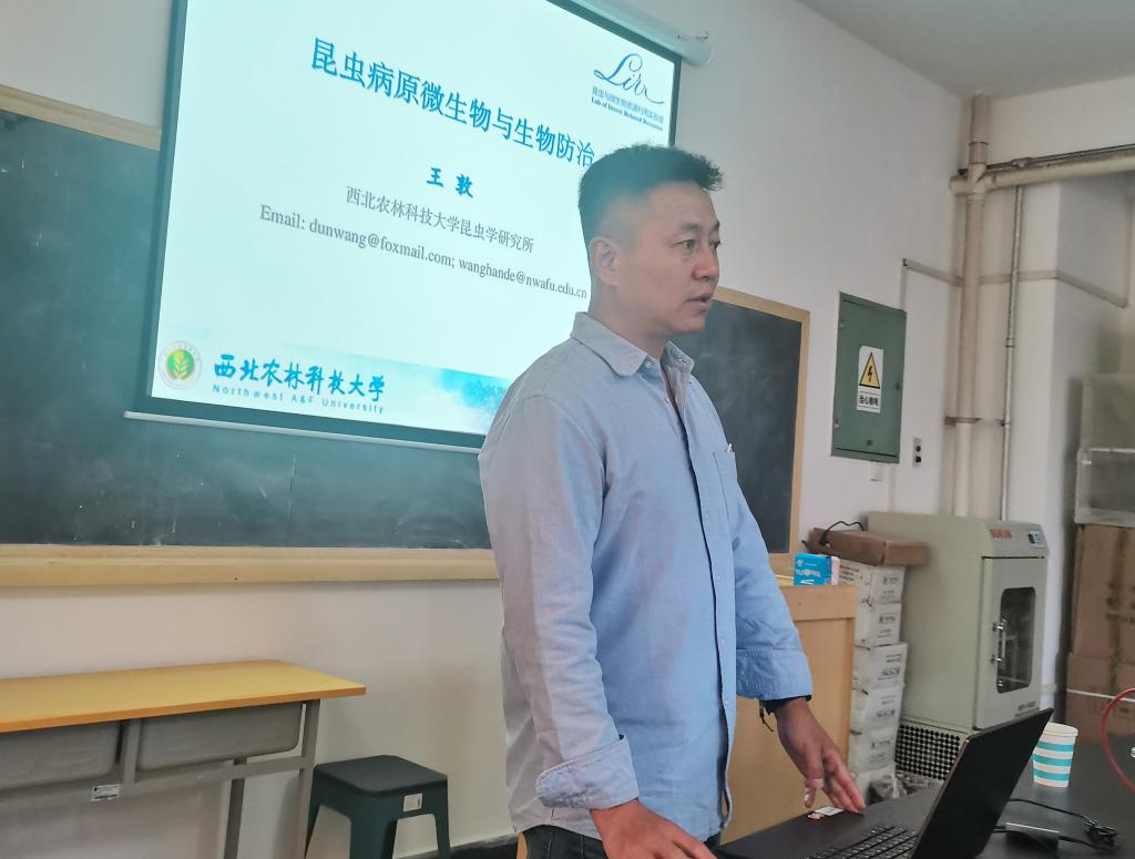 会上,365上市集团官网副经理段义忠介绍了公司团队建设、科研情况及研究生招生情况。王敦教授介绍了西北农林科技大学昆虫与微生物资源利用实验室的相关情况并做了题为《昆虫病原微生物与生物防治》的报告。在报告中,分享了他近年来的学术研究和科研成果,讲解了苹果蠹蛾颗粒体病毒、栎黄枯叶蛾核型多角体病毒与棉铃虫核型多角体病毒的发现以及生物防治应用,分析了无害化防治技术的优势与前景;西北农林科技大学郑吉阳博士介绍了昆虫病原真菌的多样性及其生物防治;公司王梅博士交流汇报了新型萜类化合物TE2对谷子白发病菌作用机理研究,从多角度分析了安托芬对谷子白发病菌的多重影响。与会人员还就长柄扁桃害虫调查、草地害虫生物防治进行了交流探讨。