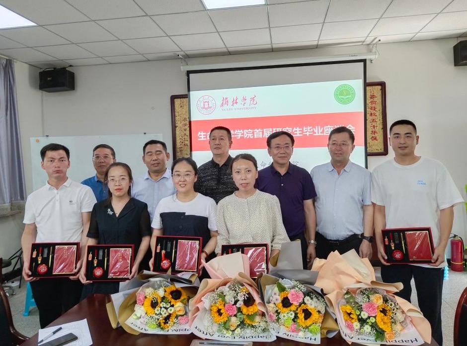 会上,陕北白绒山羊中心主任屈雷教授对首届毕业生送上三点嘱托,一是他们今后躬身于生产一线寻找自己的课题,二是发挥自己所长,三是同学们能常回家看看。蔡建昌书记指出,作为首届毕业的农业硕士,离不开公司的辛勤付出,离不开导师的细心指导,更离不开同学们的刻苦认真,希望同学们在新的工作岗位上再创辉煌。毕台飞经理谈到和这一届毕业生经历了很多的“第一次”,彼此都非常难忘,希望在未来的日子,无论是就业还是继续深造都能常联系,继续支持榆林公司的发展。张雄教授称一直关注着生科人的发展,首届研究生顺利毕业在榆林公司办学史上具有里程碑意义,感谢所有的导师和同学们的努力,愿每一位同学都能传承榆林公司的“奋斗”精神,发挥新农人的特质。全体毕业生给导师和院领导献花表达感恩,院领导和导师为毕业生颁发毕业纪念品。