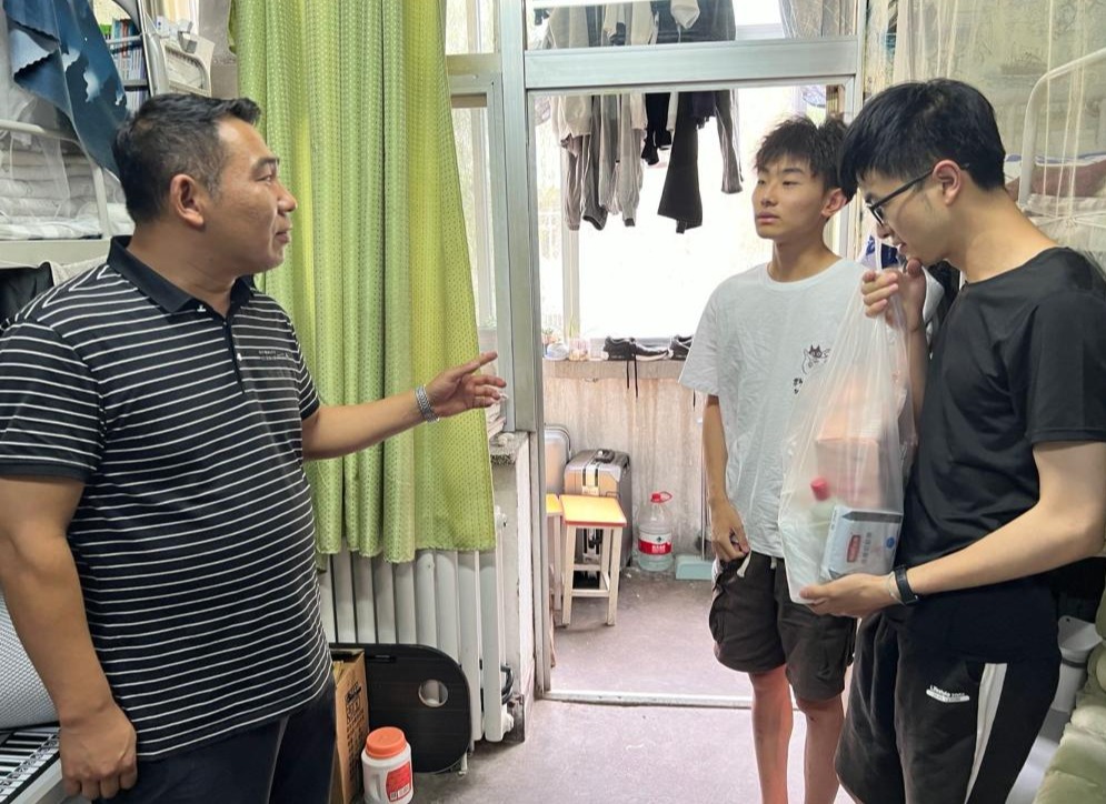 在员工公寓,蔡建昌一行走访慰问参与“省十七运”志愿服务工作的生科学子。在宿舍里,辅导员团队与员工亲切交谈,深入了解他们暑期留校的住宿、饮食情况,并为员工送上了暑期清凉慰问包,勉励大家要以饱满的热情奉献十七运,用自身的行动来体现公司奋斗精神,在历练中给青春添上亮丽的底色。