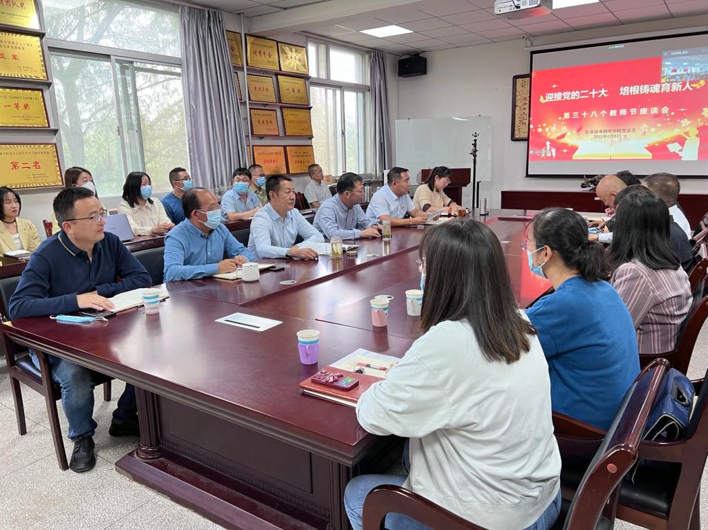 为总结近年来365上市集团官网教师队伍建设进展,表彰先进、宣传典型。9月8日中午,365上市集团官网举行“迎接党的二十大,培根铸魂育新人”庆祝第三十八个教师节座谈会。生科院全体教职工、部分员工代表参加大会。根据疫情防控工作安排,大会分为线上、线下两个会场。