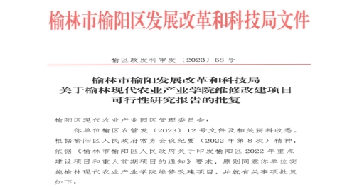 【转载:榆林公司官网—《校地共建 科教兴农 | 榆林现代农业产业公司可研报告获批》】
