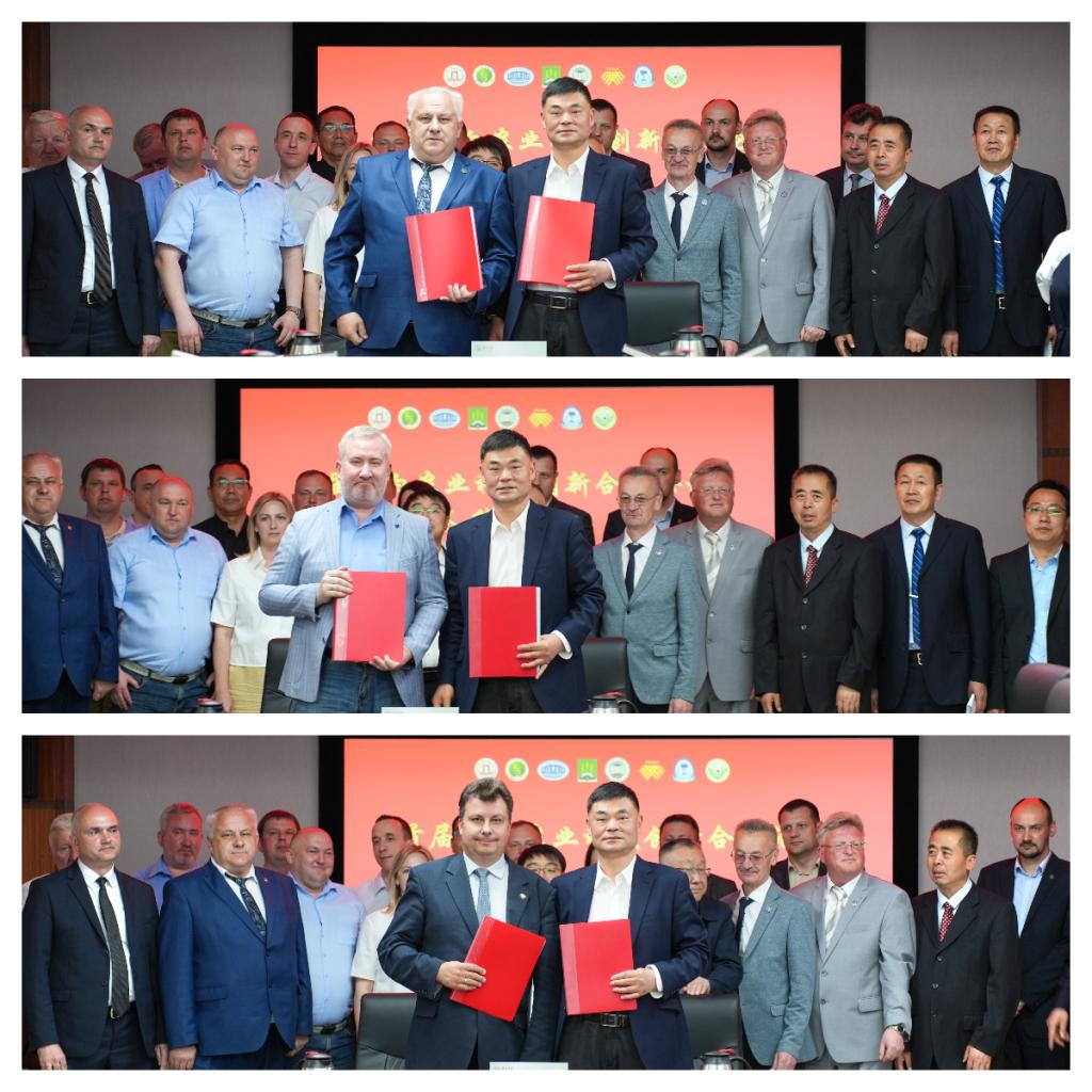 许云华代表榆林公司与白俄罗斯国立农业科公司、白俄罗斯国家科公司大学、白俄罗斯国立农业技术大学、维捷布斯克国立兽医公司4所院校分别签署合作框架协议,并互赠贺礼。