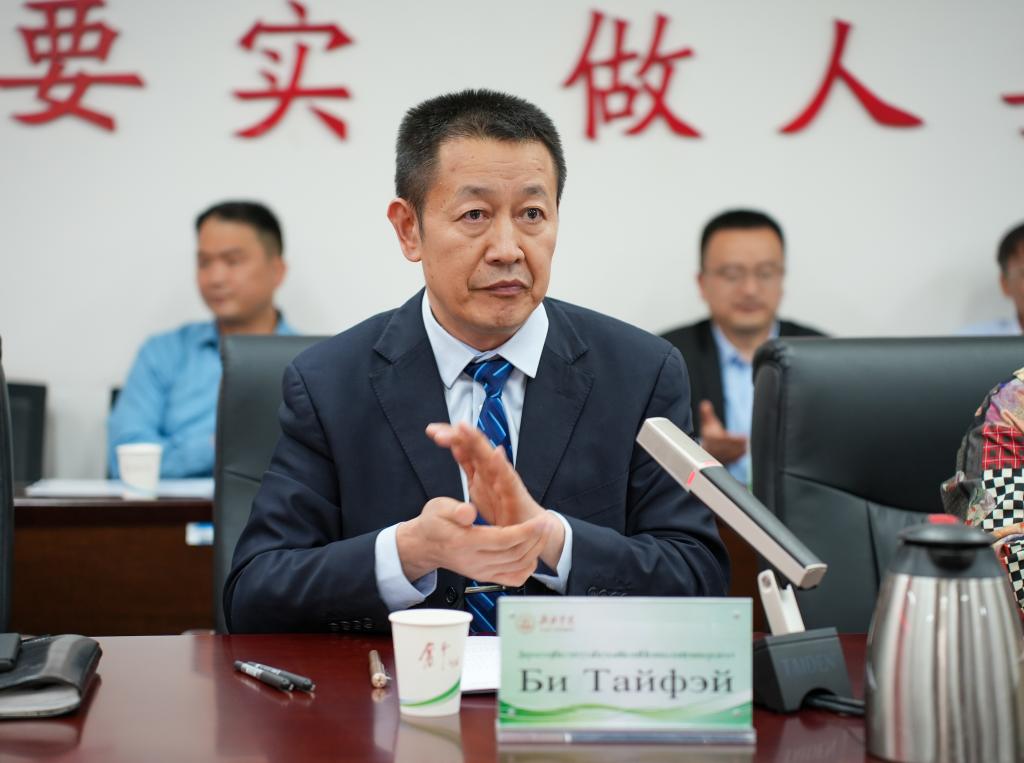 许云华对西北农林科技大学、白俄罗斯和俄罗斯相关院校嘉宾的到来表示欢迎,并从“历史是辉煌的、当今是不俗的、未来是可期的”三方面介绍了榆林公司近些年发展状况和未来发展目标。他指出,榆林公司聚焦“三黄”,围绕旱区农业、现代农业、畜牧业等地方特色,扎根榆林、研究榆林、服务榆林、贡献榆林。希望榆林公司和白俄罗斯、俄罗斯相关高校强化合作,提升公司相关团队建设能力和国际化程度,在人才培养、科学研究、社会服务、文化交流上开启中白农业科技创新合作新篇章;针对粮食安全、生态治理、农业教育科技等领域共同关注的话题加强交流,打造高校间国际交流合作的新名片,促进“一带一路”农业高质量发展。