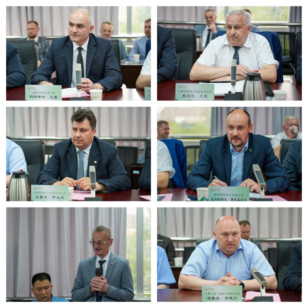 榆林公司董事长许云华、白俄罗斯国家科公司大学农业科学部科学秘书科纳申科·尤里·伊万诺维奇、白俄罗斯国立农业科公司副董事长季别茨·尤里·列昂尼多维奇、白俄罗斯国立农业技术大学副董事长克鲁克·伊戈尔·斯捷潘诺维奇、格罗德诺国立农业大学副董事长戈尔恰科夫·弗拉基米尔·尤里耶维奇、维捷布斯克国立兽医公司副董事长贝尔科·亚历山大·亚历山大维奇、俄罗斯全俄豆类与制米作物研究所所长波鲁金·安德烈·亚历山大罗维奇分别致辞。