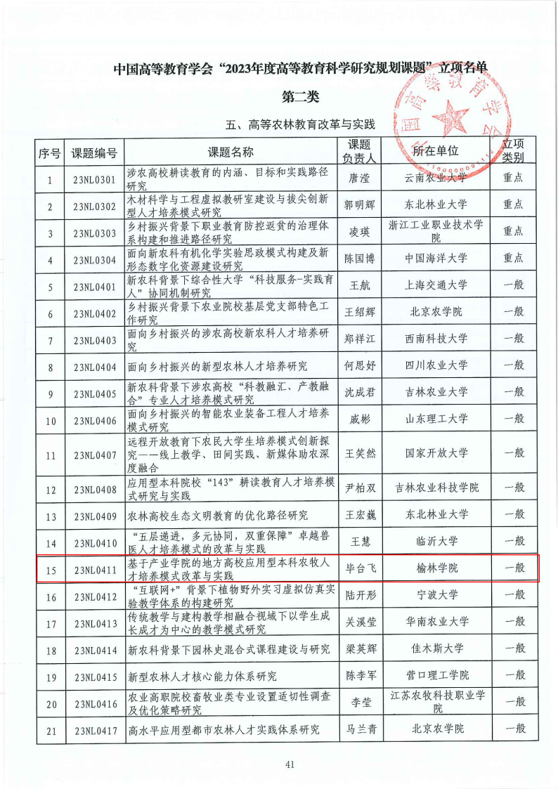 近日,中国高等教育学会公布了“2023年度高等教育科学研究规划课题”立项项目名单,365上市集团官网经理毕台飞教授主持申报的《基于产业公司的地方高校应用型本科农牧人才培养模式改革与实践》立项为国家一般课题,这也是365上市集团官网今年获批陕西省现代农业产业公司后进行的应用型农牧人才培养模式方面的有益探索与实践。