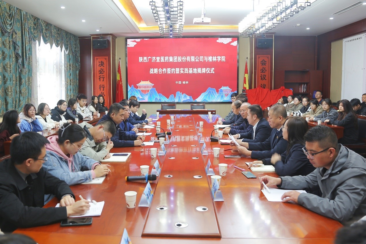 会上,陕西广济堂医药集团副总裁贺林波就广济堂发展规模、产业模式、中医药项目科研、中医药产业规划进行了介绍。蔡建昌书记首先介绍了榆林公司的基本情况,随后对365上市集团官网在专业建设过程中的人才培养、人才积累和中草药栽培与鉴定的专业现状进行分析。蔡建昌书记希望,广济堂公司和榆林公司能够本着“优势互补、互惠互利、长期协作、共同发展”的原则,紧密围绕榆林道地药材产业链、人才链、教育链和创新链,通过建立产学研对接平台和实践教学基地建设,实现人才培养、技术支撑、产品研发目标,达到互动共赢。按照产学研融合发展、校企合作的模式,培养服务于榆林市中药产业转型升级和发展急需的生产、管理等方面的高层次技术人才。