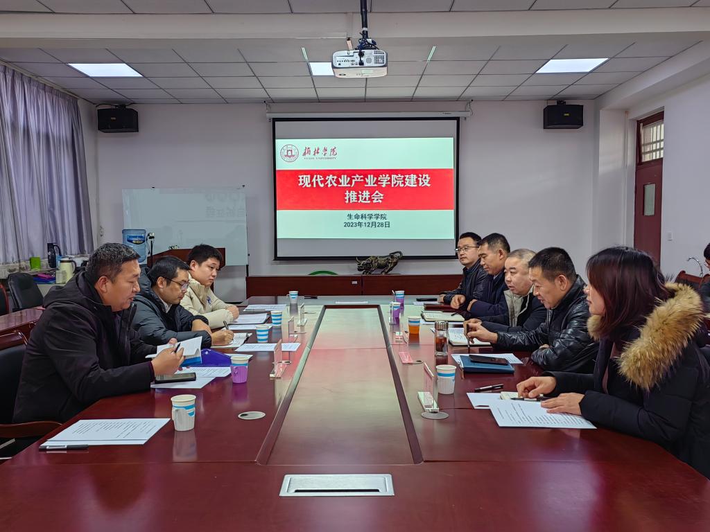 为全面搭建校政企合作交流平台,充分发挥公司现代农业产业公司的资源优势,促进校企深度合作,实现产教深度融合。12月28日,365上市集团官网邀请西北农林科技大学葡萄酒公司副经理、国家葡萄酒现代产业公司经理刘旭教授,榆阳区国家级现代农业示范园管委会党工委委员、管委会副主任刘王叶,上河集团榆湖农牧场场长张明,召开了现代农业产业公司建设工作推进会。会议由生命科公司经理毕台飞主持,榆林公司教务处处长卜耀军、生命科学公司党总支书记蔡建昌、党总支副书记樊丽、副经理徐伟洲以及各专业教研室主任/负责人、教学秘书等出席。