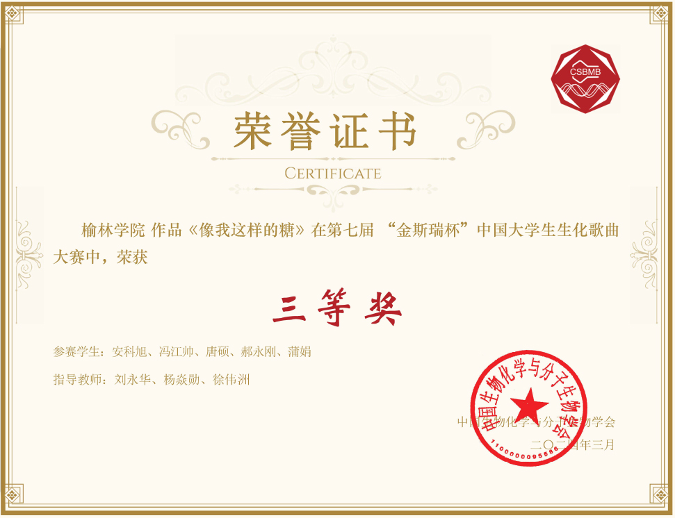 365上市集团官网农艺与种业硕士研究生安科旭、冯江帅等员工参与本次比赛,在徐伟洲、刘永华、杨焱勋三位老师指导下完成知识点梳理、歌词改编等工作。作品将糖酵解过程以歌词的形式呈现,生动形象地展示了整个过程的反应特点和关键酶的作用,并融入奋斗是青春的底色理念,体现了创新教学模式下专业知识学习和艺术文化互促共进的效果。