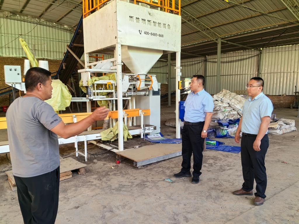 在副厂长李晖陪同下,蔡建昌一行参观了公司肥料生产区、肥料发酵池,肥料包装区以及产品展示区,亲身感受了公司为地方经济服务的潜力和发展前景。在参观过程中,他们还与公司员工进行了深入交流,就肥料产业发展趋势、技术创新以及人才培养等方面进行讨论。
