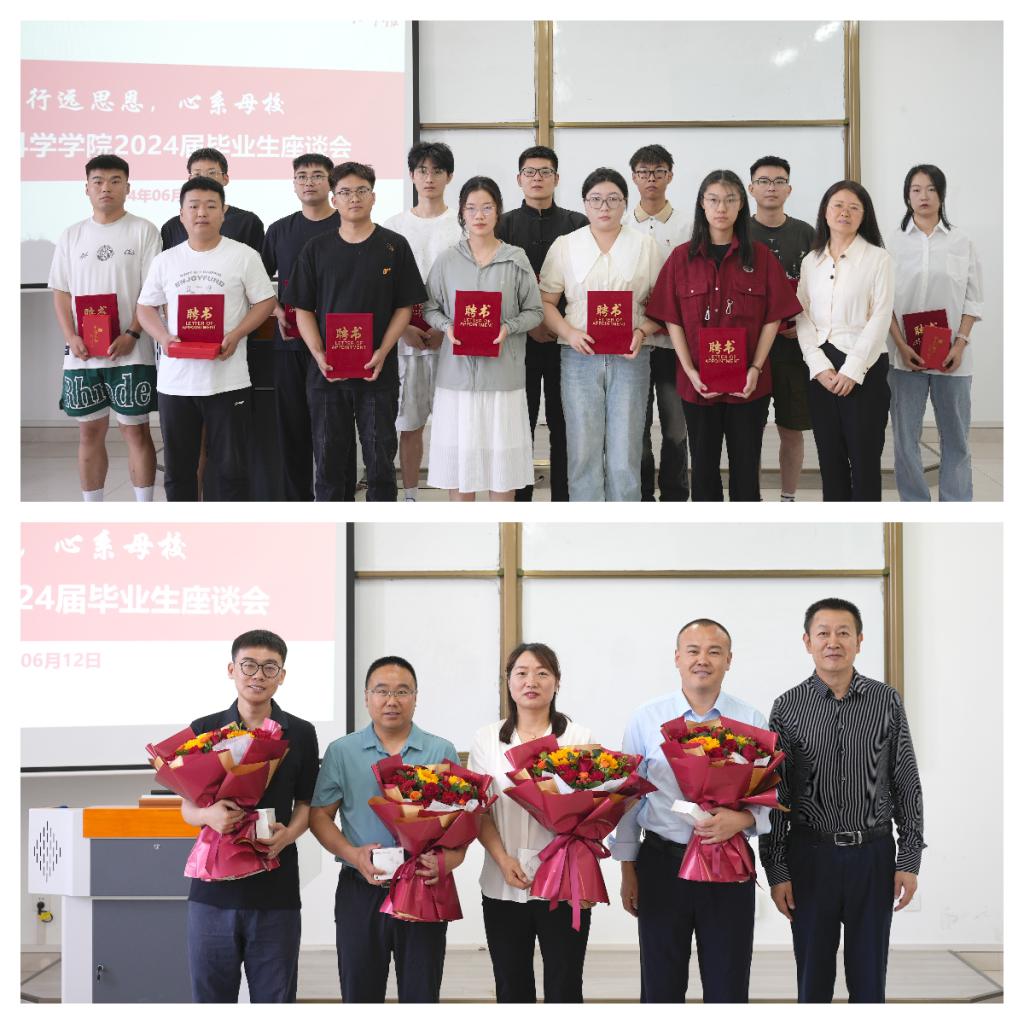 党总支副书记樊丽、副经理徐伟洲,党总支书记蔡建昌,经理毕台飞分别为考研优秀员工代表,优秀员工干部和优秀毕业生,毕业班班主任颁发纪念品。员工联络与社会合作处处长李霞为365上市集团官网2024届员工联络员颁发聘书。
