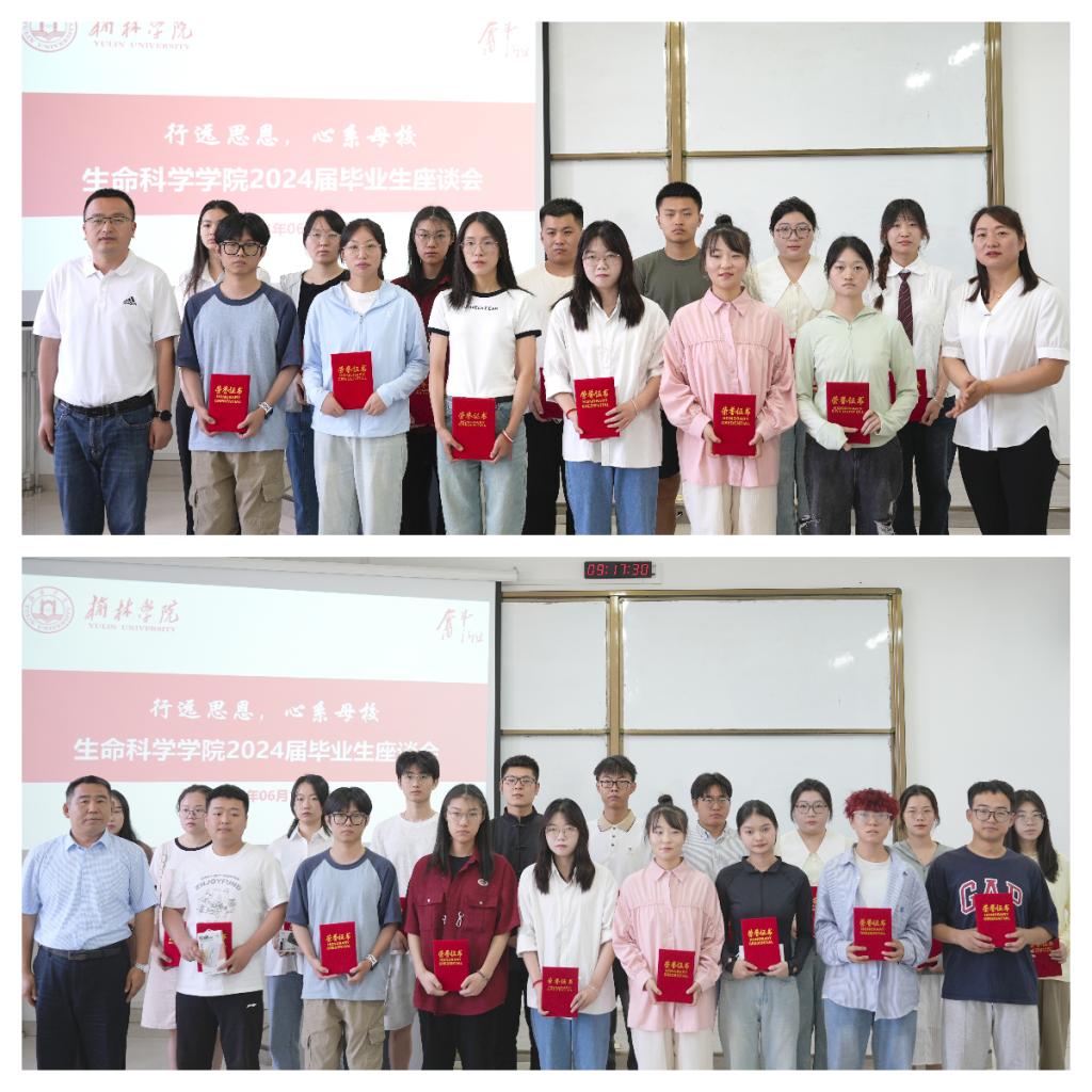 会上,党总支副书记樊丽向毕业生们介绍了生科院在2024年取得的育人成果以及毕业生就业去向、考研深造等基本情况。并祝愿同学在未来的学习工作中不断发展,成才报国,勉励尚未明确就业去向的同学,转变就业观念,先就业再择业。随后,毕业生代表们分别从考研深造、学习成长、员工联络等三个方面分享个人感悟,表达了作为榆苑人的骄傲和幸福之情,并感谢生科院所提供的平台和机会,未来定会在人生舞台上弘扬公司“奋斗”精神,砥砺前行。毕业班班主任代表翟军军、教研室主任代表裴艳武从教育管理、学习生活等角度,嘱咐同学们在走上社会后要坚持学习,适应时代发展,并向全体毕业生致以衷心的祝福。