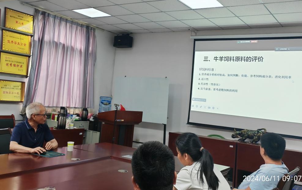 6月11日,榆林公司陕西省陕北绒山羊工程技术研究中心特邀榆林市老科协羊专家组副组长、陕西上河农牧科技(集团)股份有限公司动物营养师、陕北白绒山羊专家工作站首席专家、榆林市科技特派员、榆林正大技师公司、榆林能源化工职业技术公司兼职教授李新春做报告。陕西省陕北绒山羊工程技术研究中心主要负责同志,畜牧专业全体研究生聆听报告。