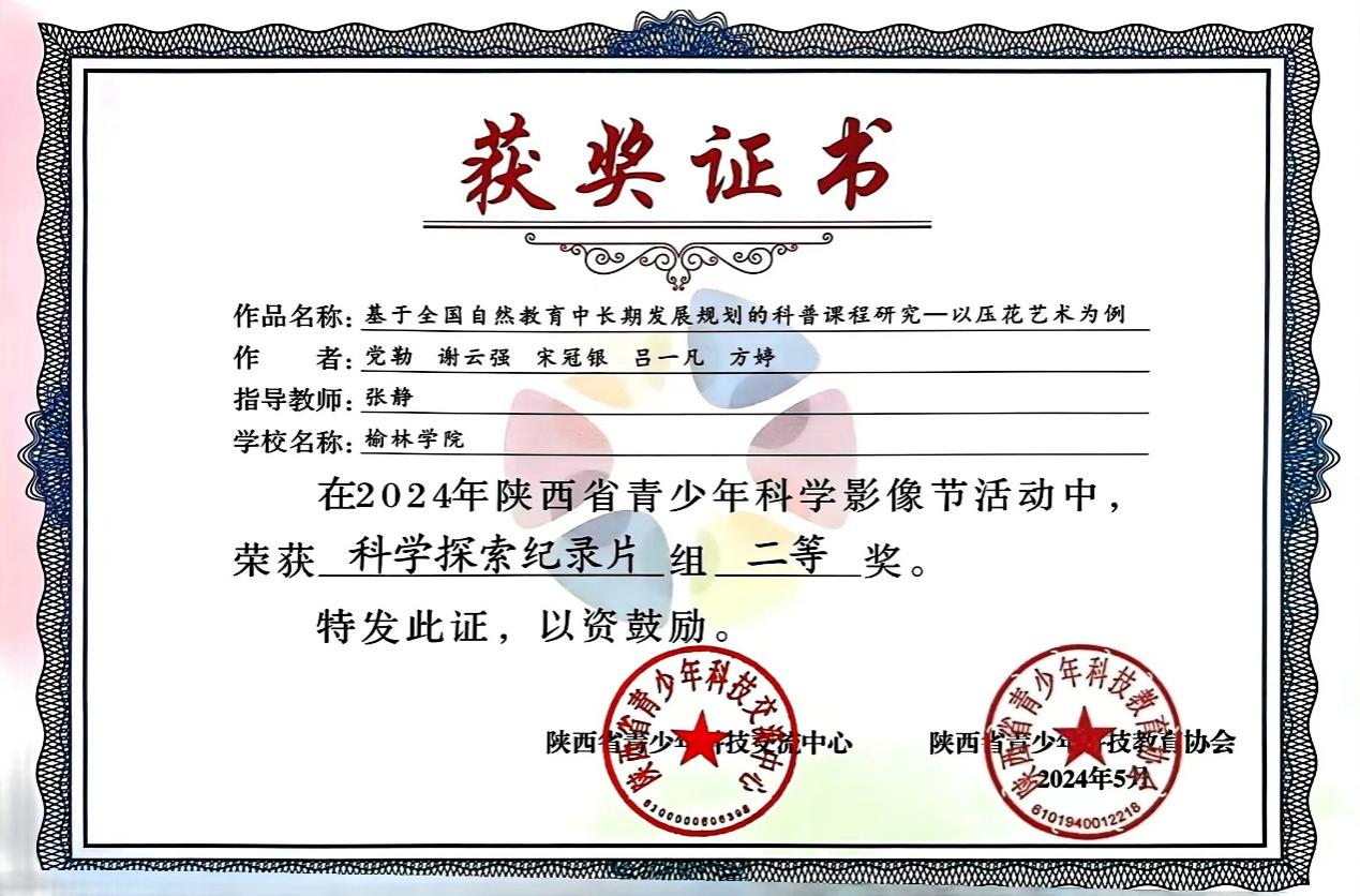 近日,2024年陕西省青少年科学影像节活动评选结果揭晓,由365上市集团官网张静副教授指导,园林专业本科生制作的《基于全国自然教育中长期发展规划的科普课程研究——以压花艺术为例》获科学探索纪录片组二等奖。