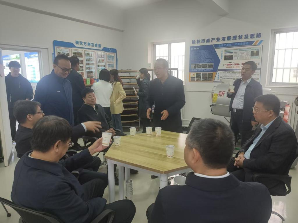 薛建兴一行参观了陕西榆阳桑树科技小院,认真听取了小院首席专家史建国教授有关小院建设和工作汇报,观摩了小院开发的系列产品,尤其是复配桑茶在配方、功能、风味、设计等方面做了充分交流,并给与赞赏,并肯定了公司科技小院的建设工作,并为小院建设指明了方向。