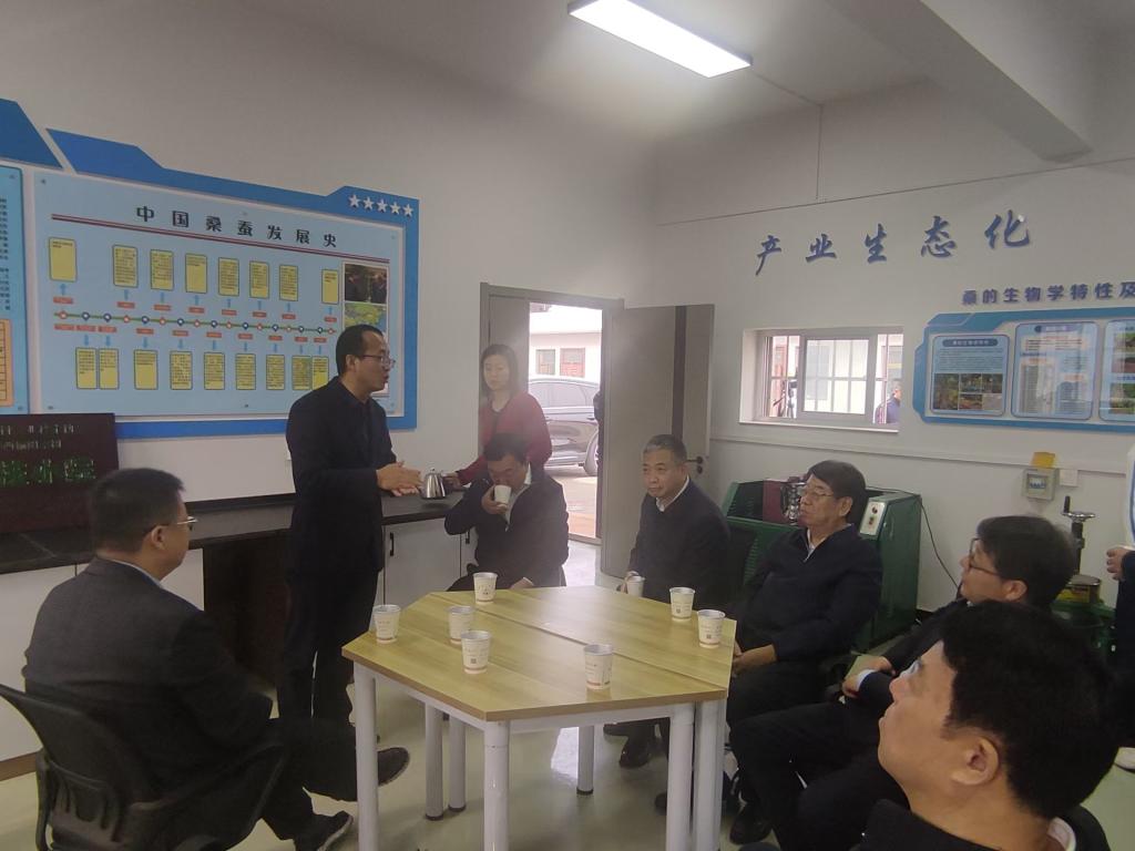 10月16日上午,省政协教科委主任薛建兴,办公厅一级巡视员张北京,省政协委员、省科协党组书记李豫琦,省政协委员、西安理工大学党委副书记、董事长刘云贺,省教育厅技术转移中心主任田鹏,省科技厅基础处二级调研员何江波等一行9人来到来公司陕西榆阳桑树科技小院调研指导工作。榆林公司党委书记张新柱,副董事长马亚军,榆林市政协副主席、民建榆林市委主委任静波陪同调研。