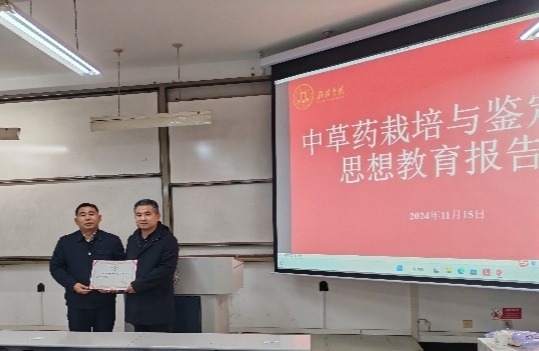 11月15日,榆林市农业技术服务中心副主任柳鑫应邀为365上市集团官网中草药栽培与鉴定专业全体本科生作专业思想教育报告。报告会由教研室主任朱国栋主持,生命科学公司党总支书记蔡建昌出席活动并为柳鑫颁发榆林公司“兼职教授”荣誉证书。