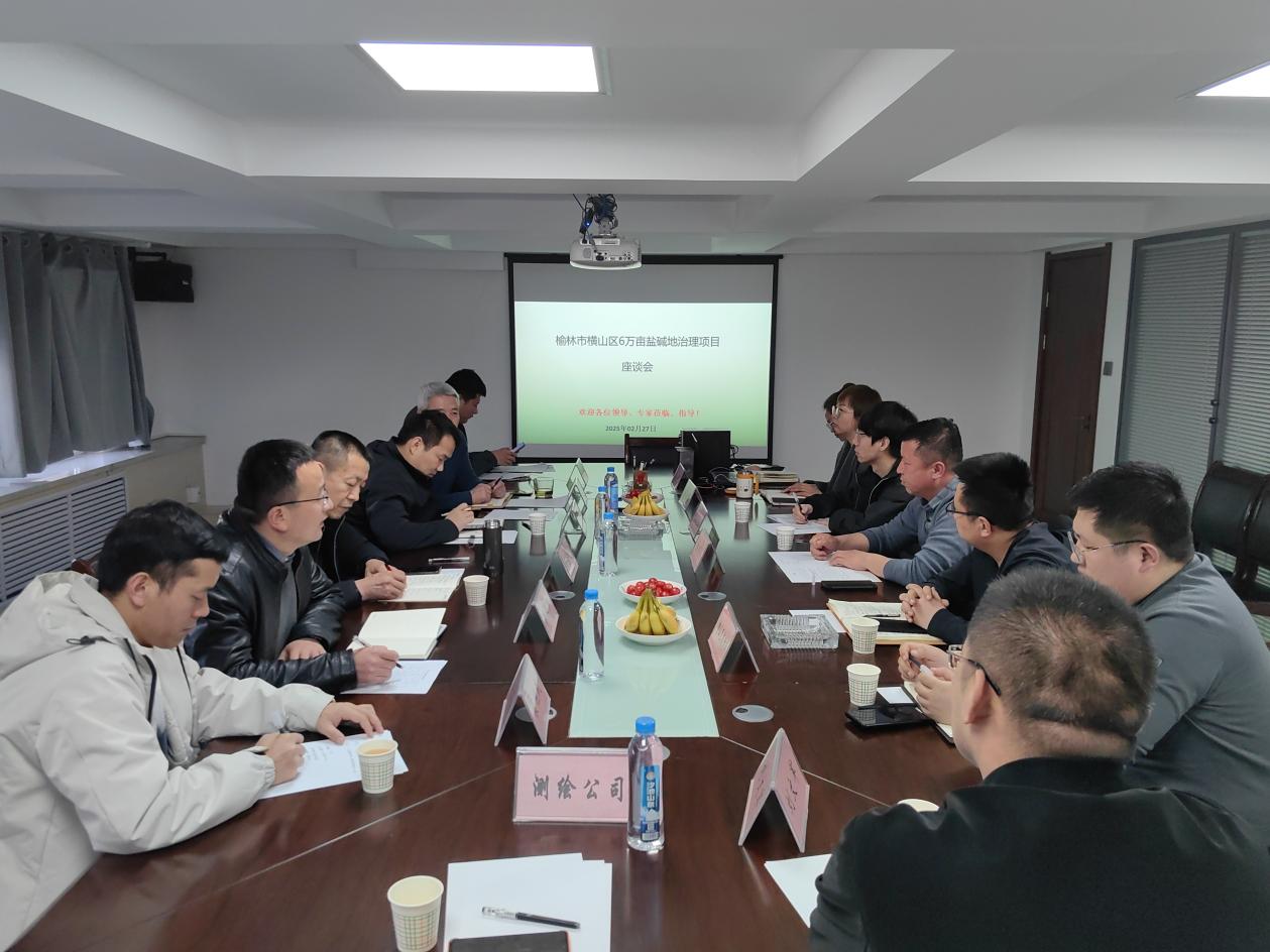 座谈期间,横山区农业技术推广中心主任胡云宇开展了题为“榆林市横山区6万亩盐碱地治理”的汇报,他从横山区盐碱地分布、治理现状、治理措施与存在问题四个方面介绍了横山区盐碱地综合治理进展。毕台飞就公司盐碱地治理团队人员情况做了详细介绍,他表示盐碱地治理事关区域农业发展、粮食安全与民生福祉,横山区盐碱地面积大、分布广、类型复杂,治理难度大,应充分利用高校资源优势,打好横山区盐碱地综合治理攻坚战,建立“高校与地方”的联动机制,充分发挥高校服务地方的宗旨。年代设计公司与横山区有关部门领导希望与榆林公司达成战略合作,并就下一步双方建立密切合作机制进行深入交流,与会人员畅所欲言、气氛热烈。