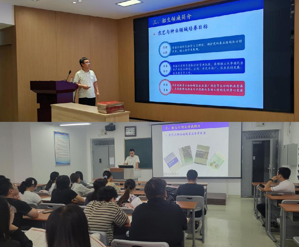 在安康公司现代农业与生物科技公司,吉磊博士向考生介绍了公司的发展历史、科研平台建设、团队力量、公司产品体系、奖助学金政策以及研究生就业情况。针对考生关心的奖助学金政策及就业前景等问题,进行了细致的现场答疑。在商洛公司生物医药与食品工程公司,李会涛博士详细介绍了公司和公司的发展沿革、团队建设、人才队伍、校园生活和文化活动等内容,重点介绍了公司的科研平台和科研情况,展示了近年来公司取得的诸多优秀科研成果。在互动答疑环节,同学们踊跃发言,严加坤副经理结合自身科研与育人经验,解答了同学们较为关注的研招考试的初、复试等常见问题,还就同学们面临的考研困惑等个性化问题开展了面对面的咨询和答疑。