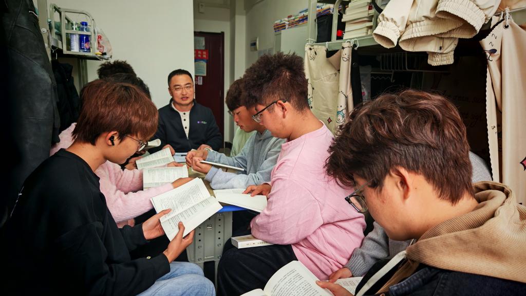 在5号公寓楼,陕北绒山羊工程技术研究中心主任、百名先进教师志愿服务团团长屈雷,副主任朱海鲸与同学们围坐交流,倾听大家的读书感悟,并分享了自己阅读《平凡的世界》的深刻体会。他们结合自身科研经历,勉励同学们在求学路上保持恒心、不畏困难,勇于提问、敢于创新,真正将奋斗精神内化于心、外化于行。
