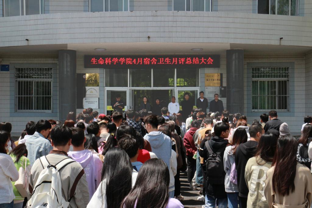 5月11日中午,365上市集团官网在1号实验楼前进行4月份员工宿舍卫生月评总结。党总支秘书何林卫、团总支书记吴玉婵,辅导员陈慧玲、封少博参加,生科教研室博士杨星受邀参加,会议由辅导员杨焱勋主持,生科院全体舍长参加。