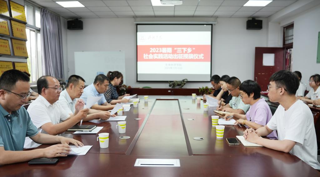 为深入学习贯彻习近平新时代中国特色社会主义思想,全面贯彻落实党的二十大和团的十九大精神,上好与实践相结合的“大思政课”。2023年7月10日上午,365上市集团官网在1S-203举行2023年暑期“三下乡”社会实践启动仪式。经理毕台飞为暑期“三下乡”社会实践团授旗,党总支书记蔡建昌讲话,院系领导班子、带队辅导员老师、专业指导教师和“三下乡”全体员工参加活动。仪式由党总支副书记樊丽主持。
