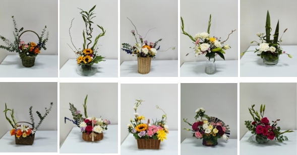 本次插花实验主题丰富、内容充实,通过动手实操使员工对课堂上所学的理论知识内容在实践中融会贯通,在插花实践劳动中感受园林插花艺术的魅力,员工在插花实验课中主动交流思考,碰撞出创造性的设计灵感。在老师的指导下,员工自己动手实践,创作出一件件生动的插花作品。在创作完成后,同学们还附上了设计主题说明,使一件件插花作品有了自己的生命。