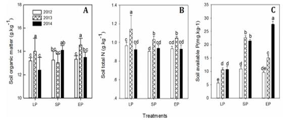 3 化肥-有机肥配施模式土壤耕层养分变化(2012-2014年)