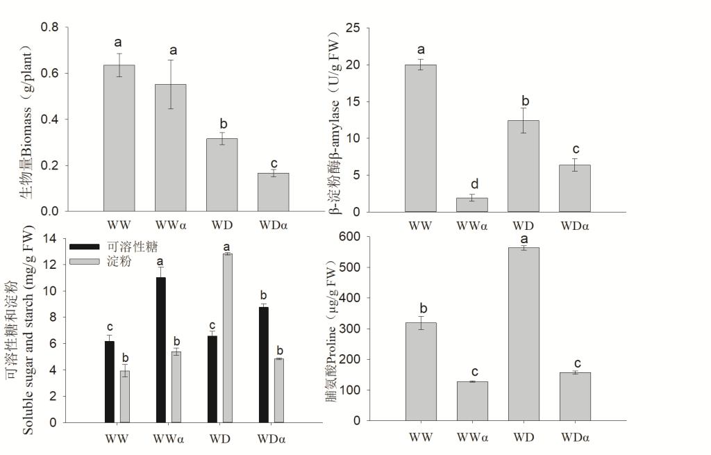 外源α⁃环糊精对干旱胁迫下谷子生物量、β⁃淀粉酶活性、可溶性糖和淀粉及脯氨酸含量的影响