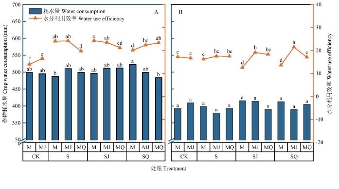 图3不同覆膜方式对玉米土壤耗水量和水分利用效率的影响