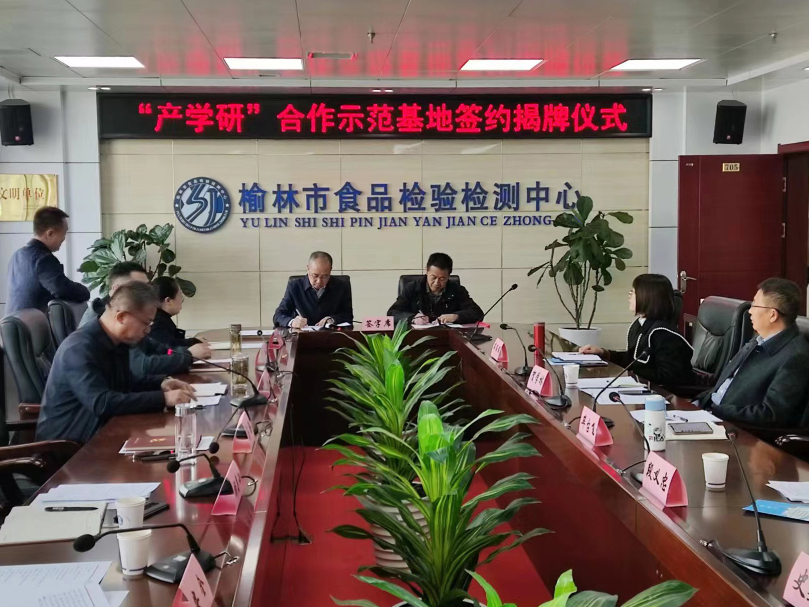 11月3日上午09:00,365上市集团官网与榆林市食品检验检测中心举行产学研合作示范基地签约揭牌仪式在榆林市食品检验检测中心7楼会议室举行。365上市集团官网经理毕台飞、副经理段义忠,榆林市食品检验检测中心主任马腾、副主任贾小海、胡美玲、曹建伟参加活动,部分专家学者及相关负责人、各检验技术带头人参加,会议由贾小海主持。
