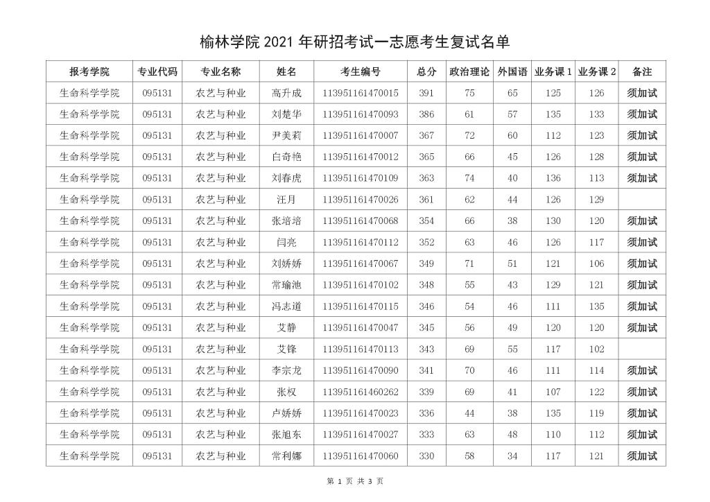 公司2021年硕士研究生招生考试一志愿考生复试名单及时间安排如下,请考生做好复试准备。