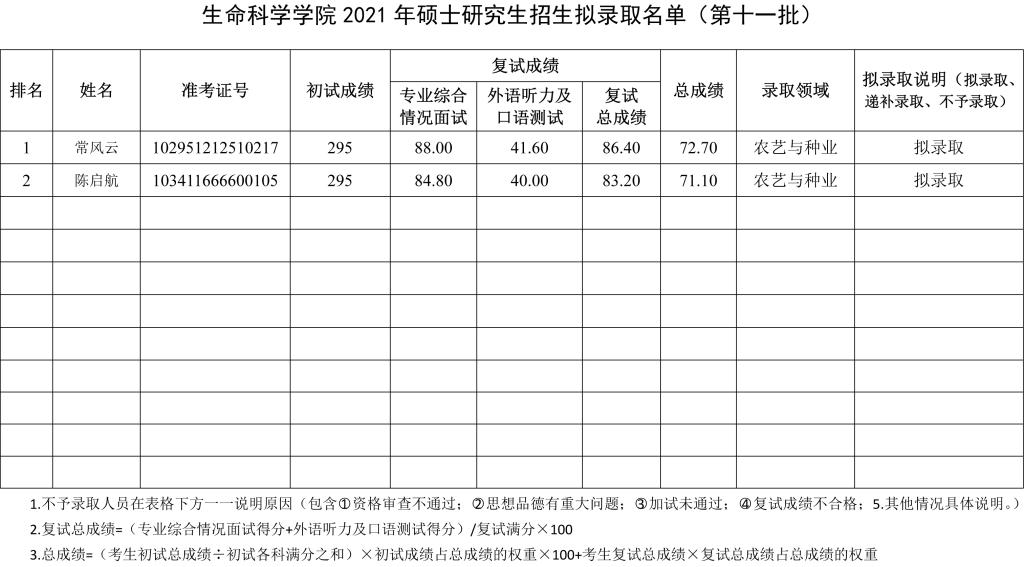 2021年硕士研究生招生拟录取名单公示(第十一批)