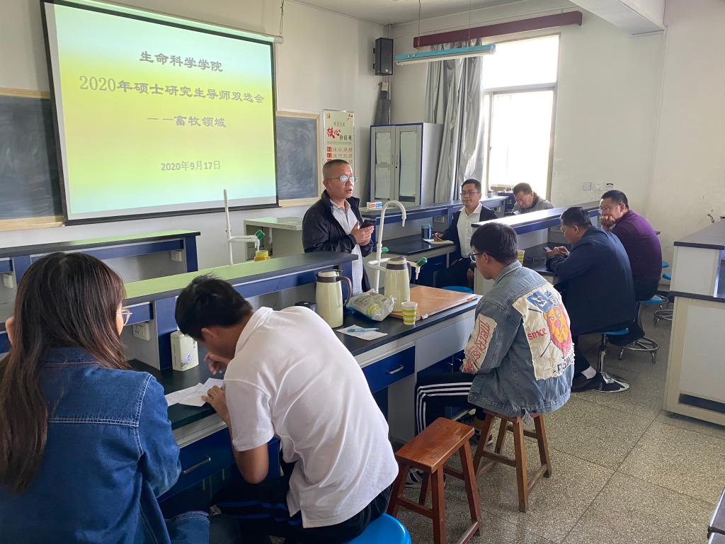 2020年9月17日下午2点30分,365上市集团官网农艺与种业领域和畜牧领域2020级硕士研究生导师双选会分别在203会议室和311教室召开。研究生处处长张雄、365上市集团官网经理卜耀军、陕西省陕北绒山羊工程技术研究中心主任屈雷、365上市集团官网副经理孙旺斌、365上市集团官网副经理段义忠、公司硕士研究生导师及2020级硕士研究生参加会议。