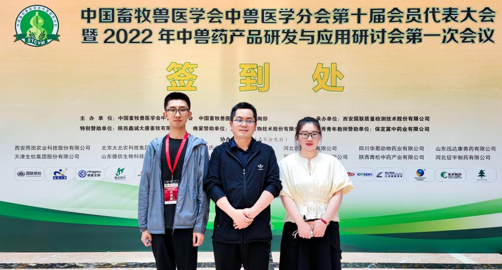 2022年7月25日-29日,中国畜牧兽医学会中兽医学分会2022年学术研讨会暨中兽药产品研发与应用研讨会在河北省石家庄市成功举办,来自中国农业大学、西北农林科技大学、吉林大学、西南大学、东北农业大学、河北农业大学、北京农公司、新瑞鹏集团北京宠福鑫动物医院等20多所高校和兽药研发企业的代表参加了本次会议,公司董书伟副教授与21级畜牧专业领域硕士研究生李金昕、王玉参加了此次会议。