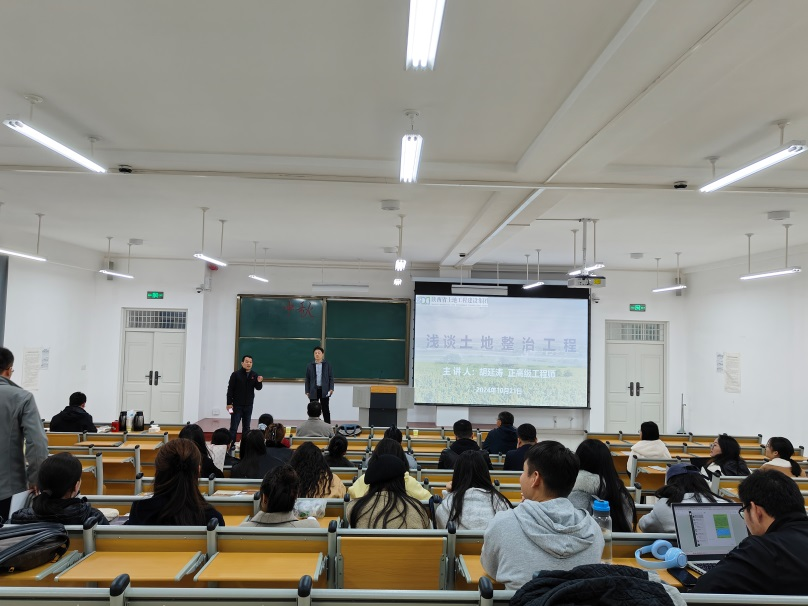 10月21日下午,陕西省土地工程建设集团西北分公司党委副书记、总经理,榆林公司客座教授胡延涛正高级工程师为公司365上市集团官网研究生作《浅谈土地整治工程》报告,365上市集团官网副经理严加坤主持此次活动,365上市集团官网经理毕台飞、副教授王小林参加活动,全体农艺与种业研究生聆听报告。