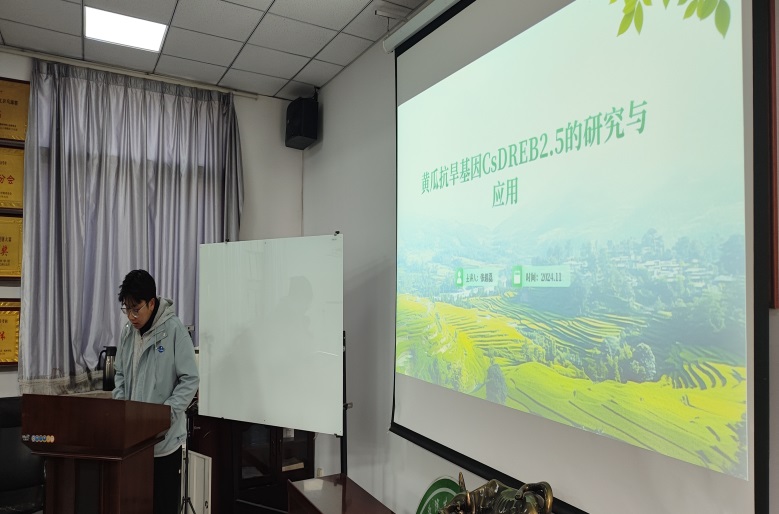 张超磊同学汇报了关于《黄瓜抗旱相关基因CsDREB2.5的克隆与表达分析》。